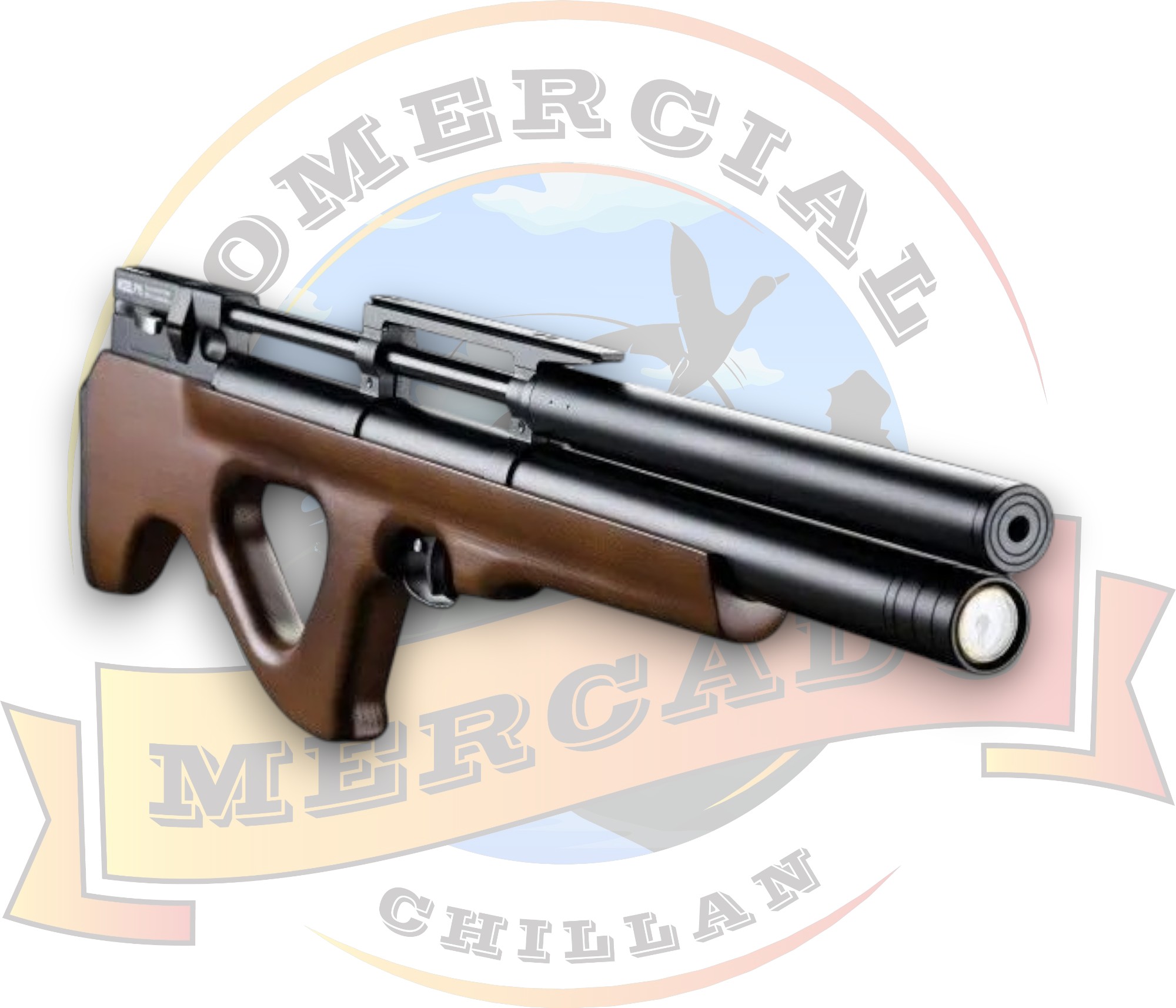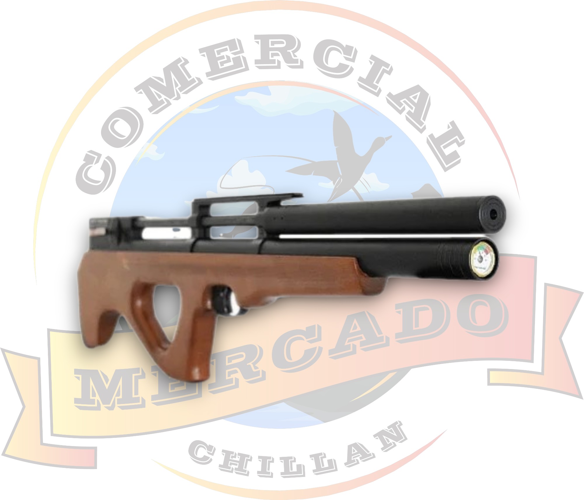 Su diseño bullpup ultracompacto lo hace fácil de transportar y manejar en espacios reducidos, sin sacrificar potencia ni precisión. Gracias a su sistema de aire precomprimido (PCP) y cargador multitiro, ofrece una experiencia de disparo fluida, constante y silenciosa.
